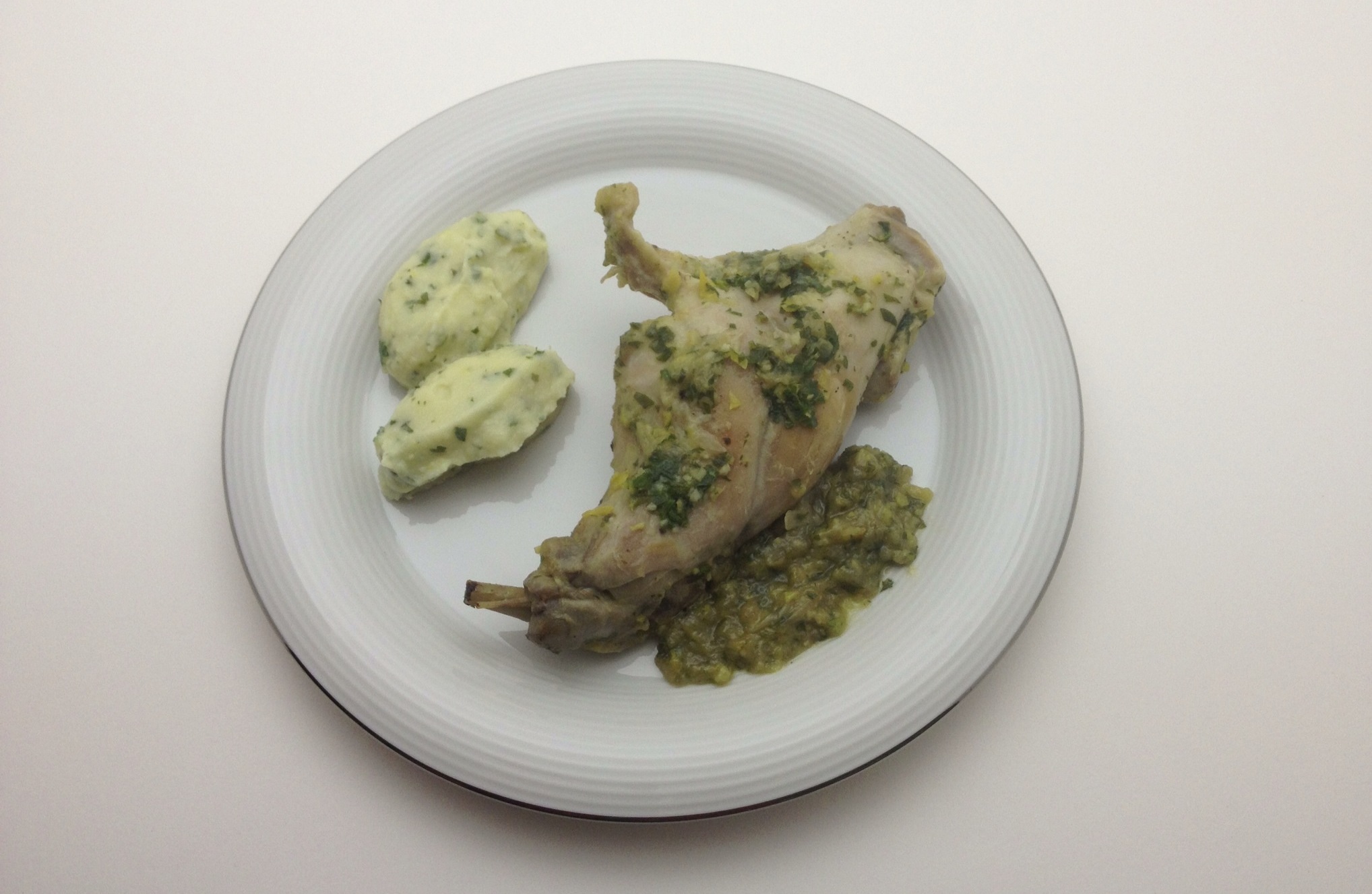 Coniglio con gremolada e purè al prezzemolo